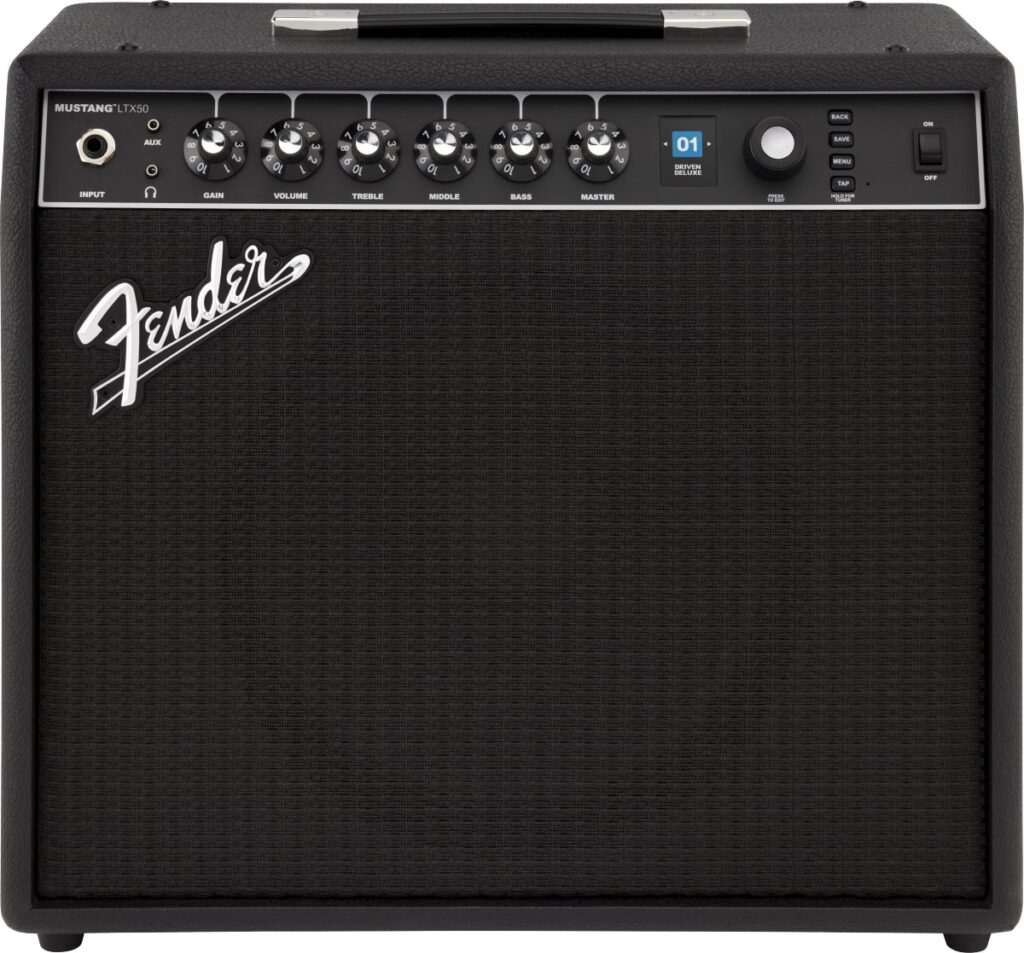 最先端の機能とクラシックなフェンダーデザインを融合させたMustang LTXは、直感的なユーザーインターフェースを備え、50種類のアンプとエフェクトモデル、100種類のプリセット保存領域、柔軟に変更可能なシグナルパス、そしてオンボードチューナーとカラーディスプレイを搭載しており、幅広い音楽スタイルに対応します。