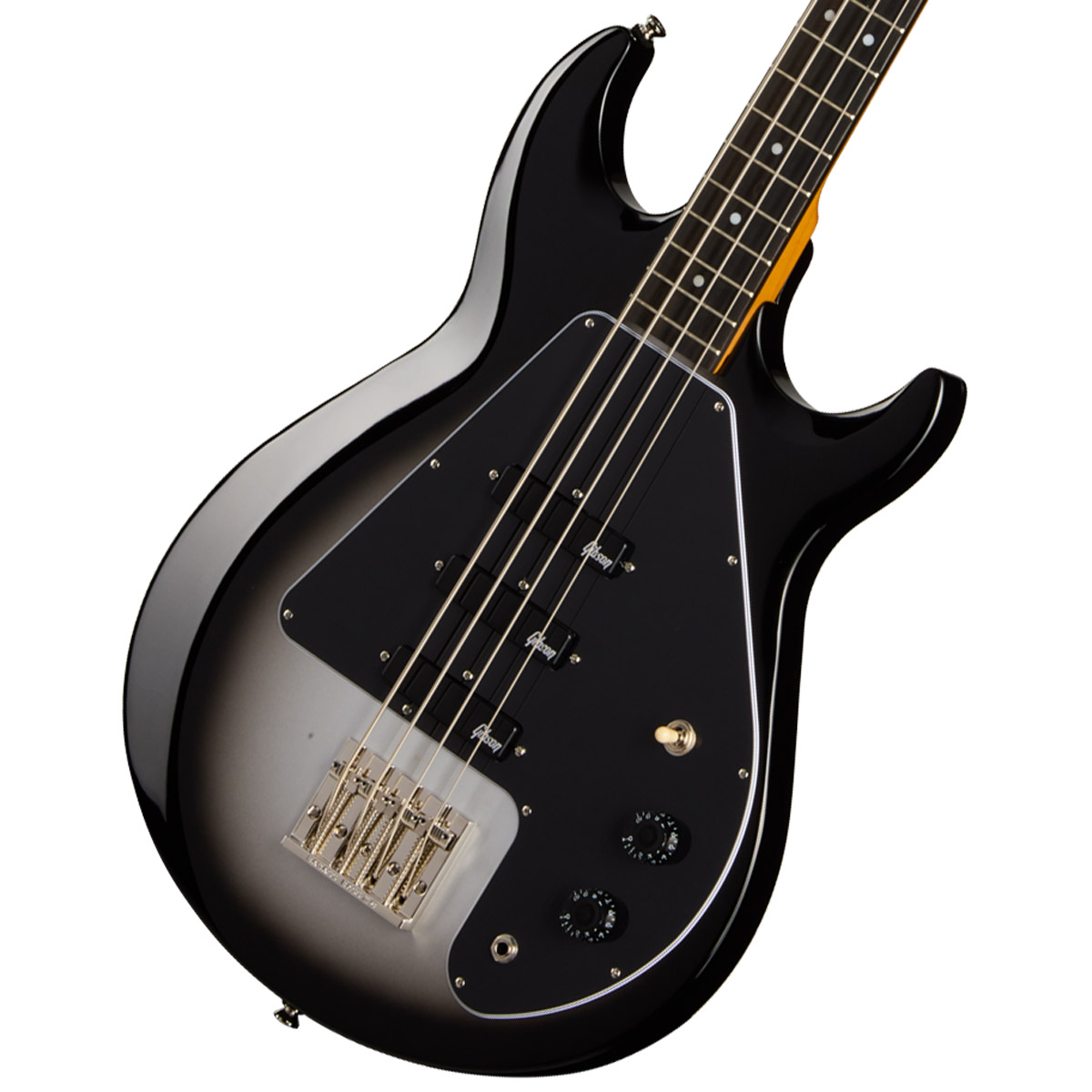 エピフォン マイク ダーント グラバー G-3 ベースは、特徴的なダブルカッタウェイのGrabberメイプルボディを採用。34インチスケールの3ピースメイプルネックは、エボニー指板&20ミディアムジャンボフレット仕様。さらに指板上にはブラック・アバロンのドットポジションマーカーが施されています。