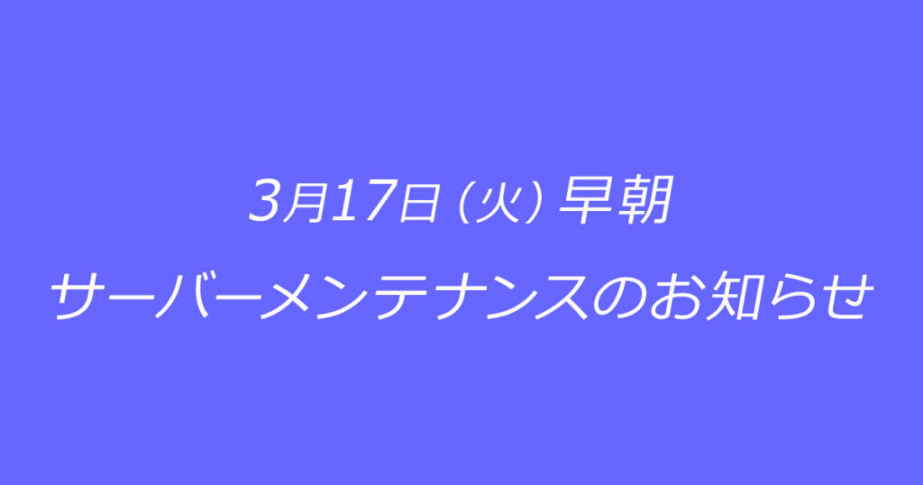 3/17(火)サーバーメンテナンスのお知らせ