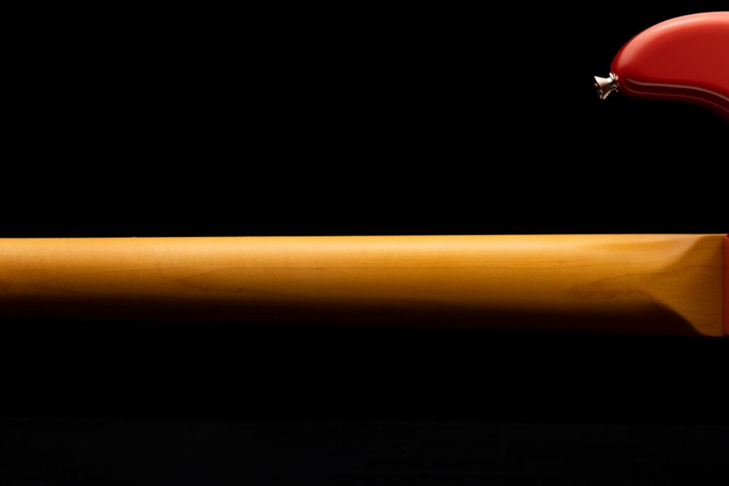 指板には厳選されたローズウッドを使用し、ボディには本人の強いこだわりにより、オリジナルと近い重量のアルダー材を採用しています。